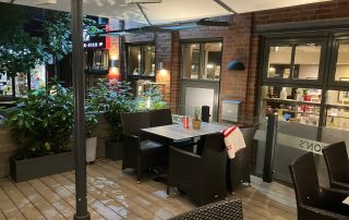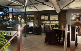 Genießen Sie die entspannte Atmosphäre im Innenhof des Hopfenmarktes bei leichten Drinks und leckeren Speisen.